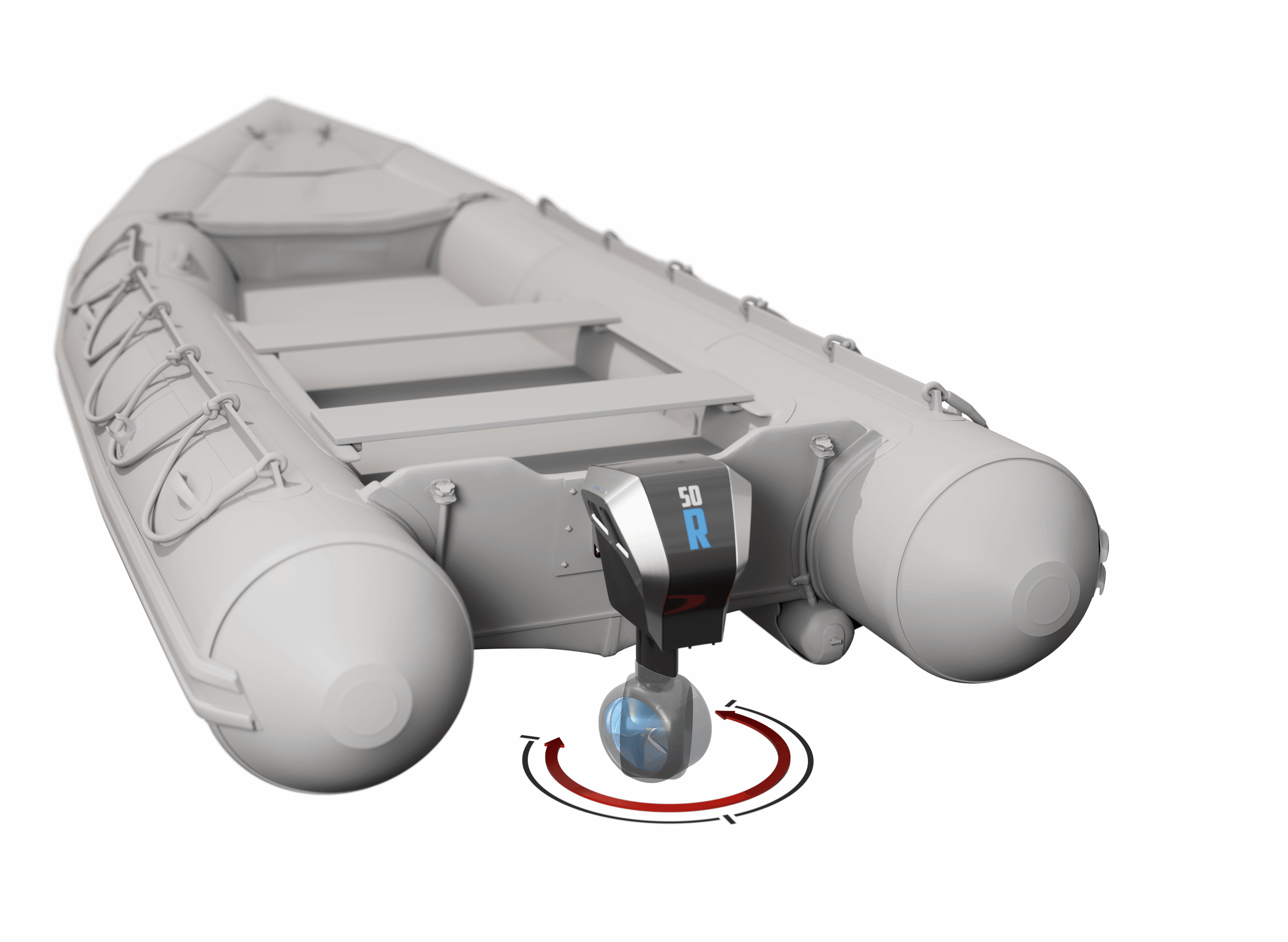 Our steerable outboard boasts an impressive 320-degree rotation and 360-degree propulsion, configurable to lower angles if needed. This wide range of motion ensures optimal maneuverability, making navigation and docking more precise and effortless for the operator.